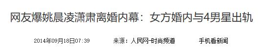 人民网——网友爆姚晨凌潇肃离婚内幕:女方婚内与4男星出轨