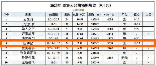 比如和田曦薇合作《田耕纪》热播期云合估算集均3000万,小成本剧这个成绩还算可以。