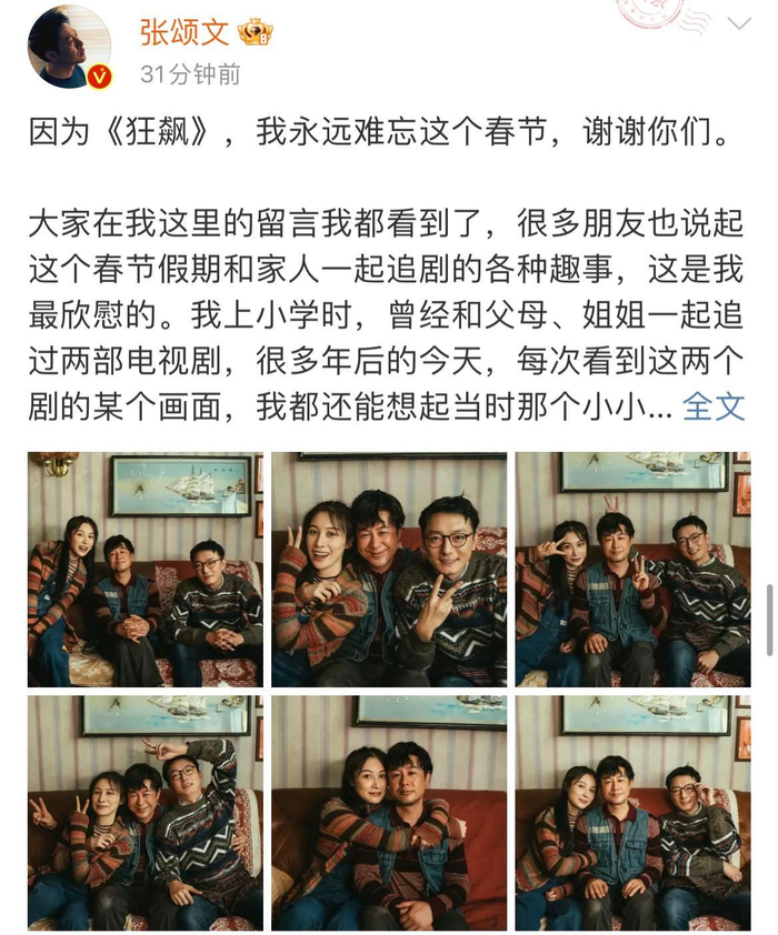 张颂文称大家的留言他都看到了,很多朋友也说起这个春节假期和家人一起追剧的各种趣事,这是他最欣慰的。