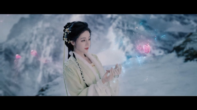 雪中对视:二人于追光灯下演绎剧中“灵主救将军”经典桥段,眼神拉丝张力拉满;