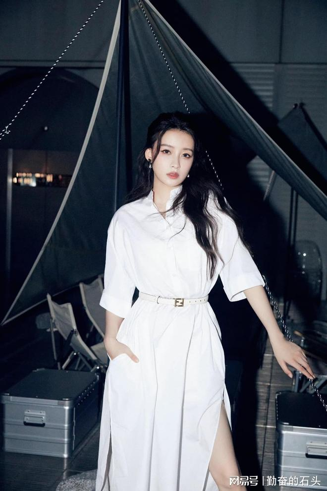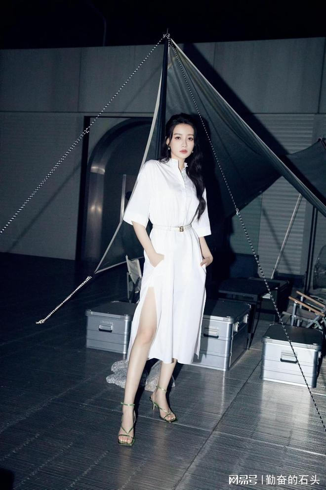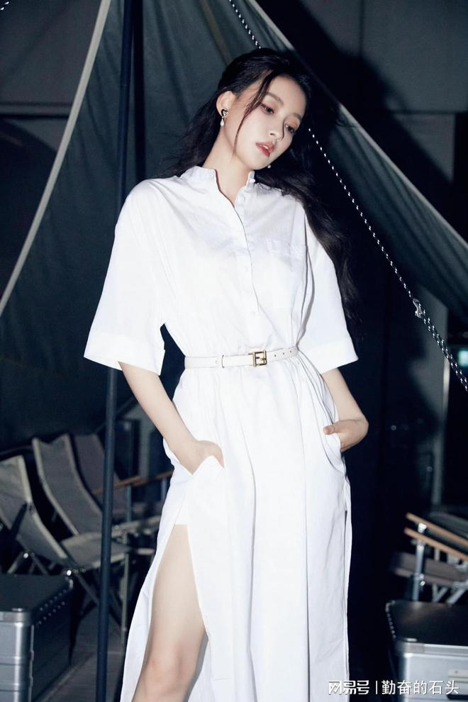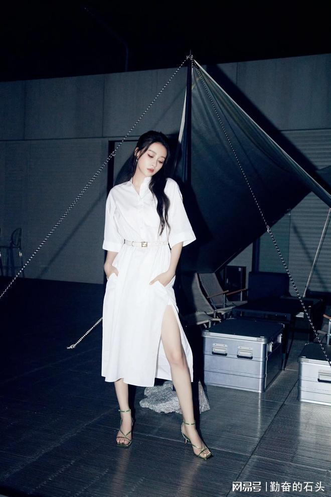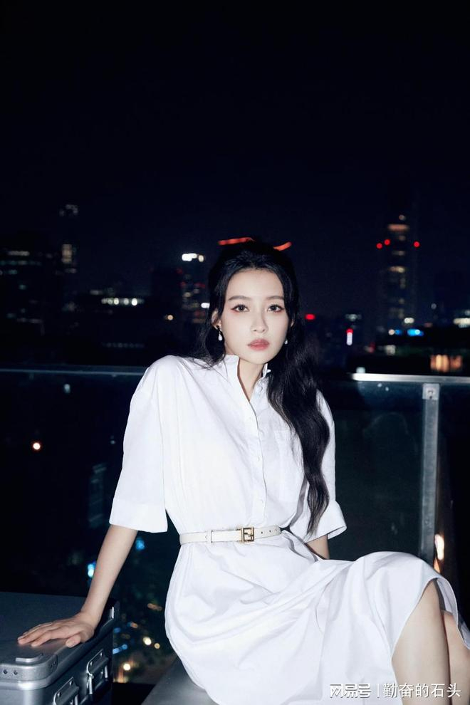 一身白裙,夜幕下更衬托了优雅,美丽。这样的女神,你是不是很感动。