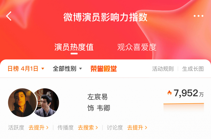 #微博青云演员专项# 恭喜@左宸易 !《月鳞绮纪》上线首日,微博演员影响力指数破7000万~速速追剧!见证韦卿精彩表现#上新了内娱#