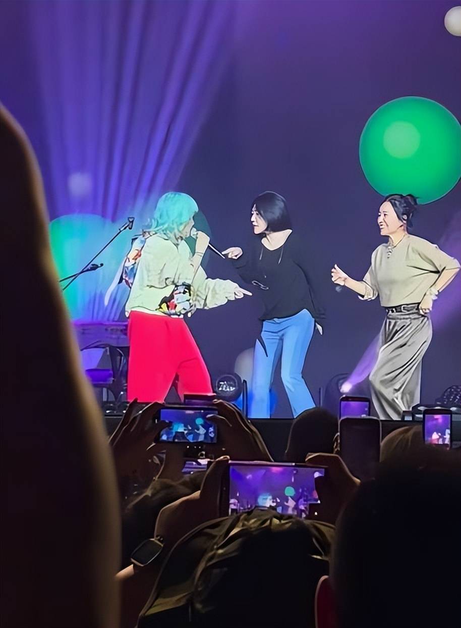 小S、阿雅、田馥甄等圈内好友纷纷现身支持。小S穿着黑色露肩T恤搭配牛仔裤,戴着眼镜,手里拿着一只杯子,全程情绪波动明显。当范晓萱唱到代表作《管他什么音乐》时,小S和阿雅更是直接登台,即兴伴舞,仿佛又回到了当年四人一起疯一起闹的时光。