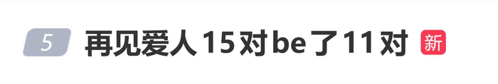 但佟晨洁的官宣,更像是一把钥匙,瞬间打开了大众对《再见爱人》这档“婚姻魔咒”节目的记忆闸门。这档从2021年开播的婚姻纪实观察真人秀,走到第五季,一共邀请了15对当时正面临危机的夫妻。如今回头一算账,好家伙,15对里竟然已经“be”了11对,存活率低得惊人,被网友调侃为“国产婚姻最强预言家”。