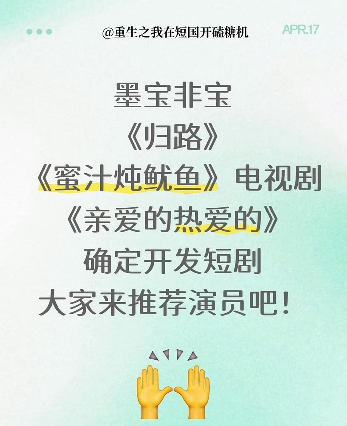 ## 喜剧狂想:当职场狗血与生活狗血交织时,谁能不成为这部短剧的“狗头保命”?,当看到《亲爱的热爱的》要拍短剧,我的第一反应就是:这不就是天注定让我成为这部剧的“狗头保命”吗?主角人选引发热议,韩商言和佟年这两个角色让我忍不住想,天上地下,哪个角色能更好地诠释这份“热爱”呢?,韩商言,这个角色简直是职场狗血的代名词,他的存在,就像一部优质的职场剧集里那个总能在关键时刻说出一些让人捧腹又叹息的台词的“大神”,想想他的每一个动作,每一个眼神,都仿佛在向我们展示着职场中的无奈与挣扎,尤其是他的“商业之道”,每次听到他滔滔不绝地讲那些看似高明实则愚蠢的商业策略,你就忍不住想起那些在职场中为虎傾城的同事。,而佟年这个角色,则像是警察界的“铁血”人物,他的存在,像是在告诉我们:这个世界上,除了韩商言,其他人都可以成为佟年的“热爱”,佟年对“热爱”的执着,简直是对“热爱”这个词的一种暴力解读,他的每一个行动,每一句话,都像是要将“热爱”这个词从字面上揉成一团。,至于归路和杨紫这两个配角,真让人忍不住为他们叫苦,归路的存在,就像是在告诉我们:即使你觉得自己已经找到了人生最好的伴侣,可能还是会遇到一个“归路”,而杨紫的存在,则像是网络剧中那个总是出人意料却又合情合理的“反派”,她的每一个举动,都像是要将“热爱”这个词彻底毁掉。,这部短剧的热度之所以这么高,很大程度上要感谢这些角色的存在,他们的互动,像是将职场中的各种矛盾和无奈都包裹了个精致的包装,变成了我们每个人都能产生共鸣的笑点。,更有趣的是,短剧的题目《亲爱的热爱的》已经暗示了一个非常有趣的可能性:在这部剧中,谁才是真正的“热爱”?是韩商言对“热爱”的解读,还是佟年对“热爱”的执着,还是归路和杨紫之间那种看似暧昧实则复杂的关系?,这部短剧的热度,绝对不会让我们对“热爱”这个词再也看不到了,无论是职场中的热爱,还是生活中的热爱,都可能在这部剧中得到最精彩的诠释。**亲爱的热爱的要拍短剧:韩商言和佟年的人选引发热议!**,关于这部短剧的主角人选引发了粉丝们的热烈讨论,尤其是韩商言和佟年这两个角色,简直成了网友们扒二次元的热门话题!韩商言这个角色听起来像是一个商业天才,冷酷又深情,总能在关键时刻做出让人意想不到的决定;佟年这个角色更像是那个神秘又深情的男生,总让人忍不住想给他一颗糖葫芦,粉丝们一致认为,找对演员真的很重要,毕竟“演技过剩”才是短剧成功的关键!,首先来看韩商言这个角色,这个角色需要一个演员,既能展现出商业天才的冷酷与理性,又能在关键时刻流露出深情的一面,粉丝们提到王一博这个演员,觉得他虽然看起来像是个“花瓶”,但每次出场都能完美驾驭冷酷男的范儿,尤其是他的眼神和表情管理,简直让人怀疑是否他是从天生出来的商业高手!不过也有不少网友担心,王一博虽然演技过剩,但有时候会显得过于“生硬”,会不会让韩商言这个角色显得太刻薄了呢?毕竟商业天才不就是个“心机家”吗,能不能在表达上更灵活一点呢?,然后是佟年这个角色,这个角色需要一个演员,既能展现出神秘的氛围,又能在与其他角色互动时带来更多的喜感,粉丝们提到陈建平这个演员,觉得他虽然不是传统意义上的“花瓶”,但那种深情又略带疯狂的气质,完全能给观众带来“心动”的感觉,陈建平的表演总是充满张力,无论是冷笑还是温柔,都能让人忍不住想给他打个拥抱,他的发型和造型也更贴合佟年的形象,简直就是个天生一对的角色!,除了王一博和陈建平,粉丝们也提到了一些其他演员的可能性,比如林宥嘉和黄晓明,林宥嘉虽然演技过剩,但有时候会显得太过“温柔”,可能不太适合韩商言这个角色,毕竟商业天才总不能太过于“软”,而黄晓明则因为太过于“正气凛然”了,可能会让佟年这个角色显得太过于“硬核”,缺乏一些柔情的温度,还是王一博和陈建平更有可能成为最终的主线演员吧!,粉丝们对这部短剧的人选期待值还是很高的!不管是王一博还是陈建平,都能很好地诠释韩商言和佟年的形象,尤其是他们之间的互动,肯定会让观众们欲罢不能!希望这部短剧能早日开播,让我们一起来见证这两个角色是如何在短短的篇幅里,点燃一段浪漫的爱情吧!