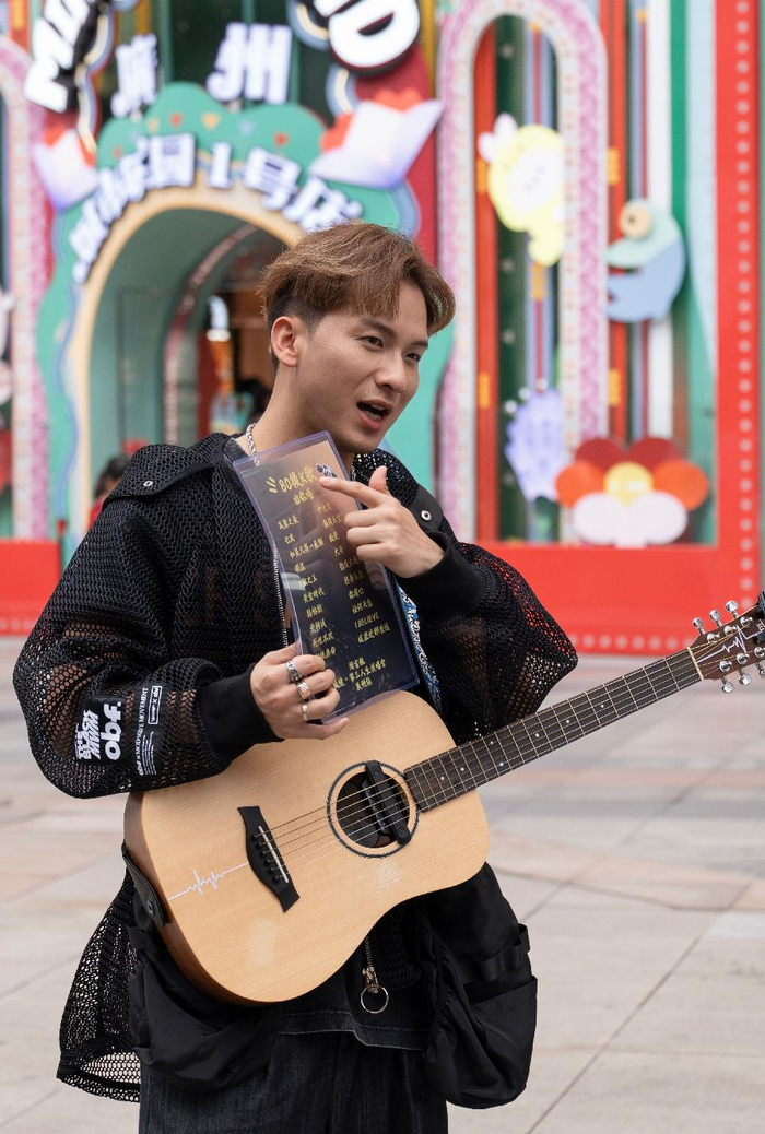 发布会后,吉吉拿着吉他闪现天河街头,随机邀请路人跟他一起合唱“90年代”“00年代”的经典粤语歌。现场陆续有路人及粉丝被他的弹唱吸引,驻足聆听,当中更有外籍游客观演,让他大为意外。“广州的朋友都很热情很投入,没想到在街头近距离合唱是这么好玩。”对于这次街头挑战,吉吉表示非常成功,也期待在演唱会当天可以和大家一起大合唱,希望全粤语歌单可以给到场乐迷带来惊喜。