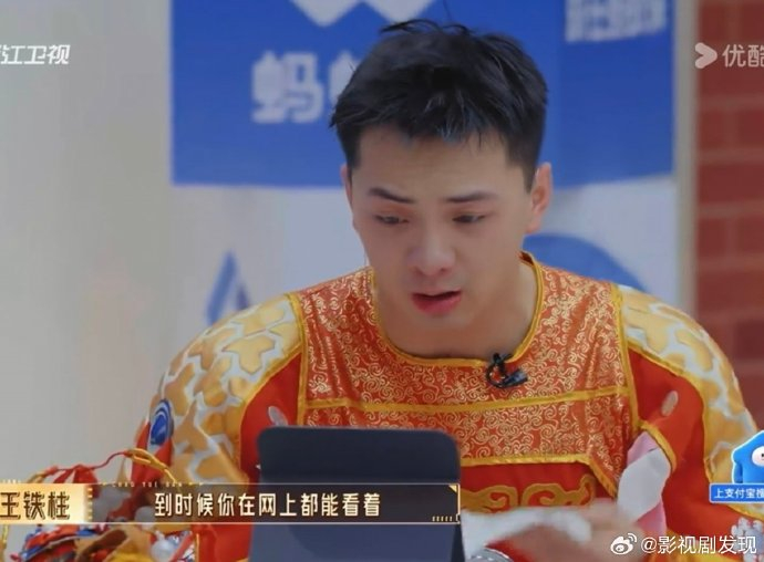 在节目组仅提供“卸妆时与家人视频报平安”的命题下,王铁柱全程即兴发挥。他模拟卸妆动作时,手指机械地擦拭脸颊,眼神却紧锁手机屏幕,嘴角强撑笑意反复念叨“剧组伙食好”“不累”,而颤抖的尾音和频繁抿嘴的小动作,泄露了强压的哽咽。