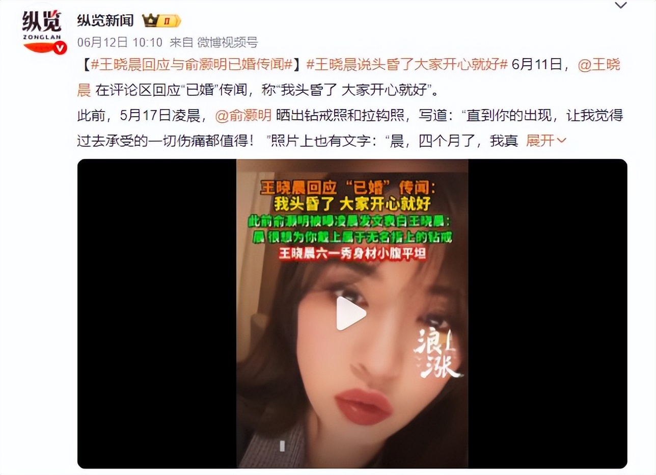 可王晓晨的反应,却泼了所有人一盆冷水,被追问婚讯时,她只轻飘飘说一句“头昏了,大家开心就好”。