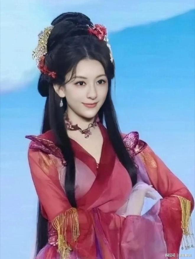 方媛一身红紫轻纱裙,这是她的第一次古风装扮吧。发髻高挽,身段柔软,一张古典美人脸,仙气十足。