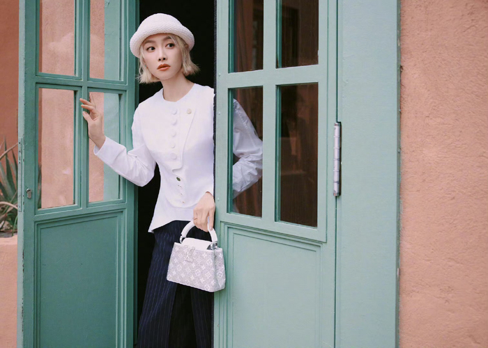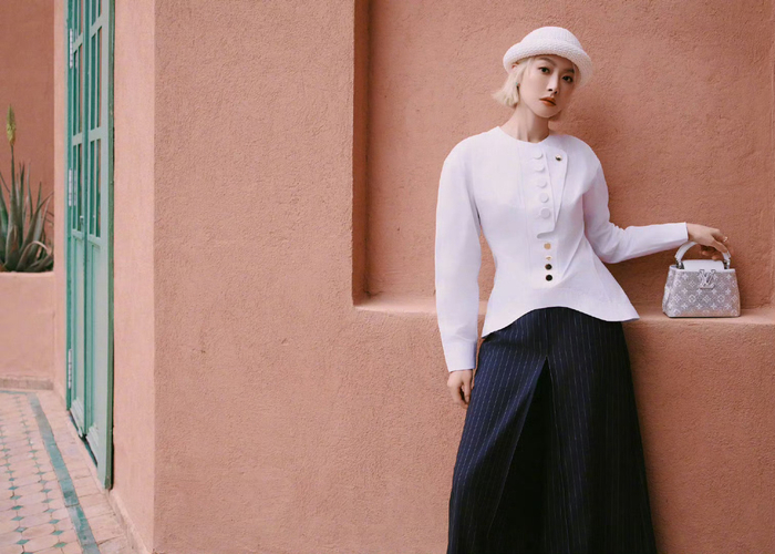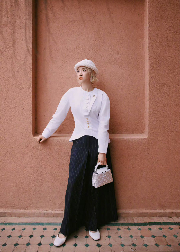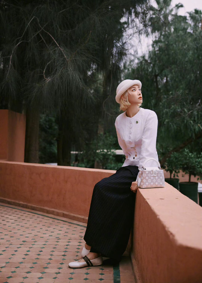 宋茜亮相LV摩洛哥高珠活动,身着26春夏系列,金发搭配简约穿搭,演绎摩登慵懒的法式优雅格调。
