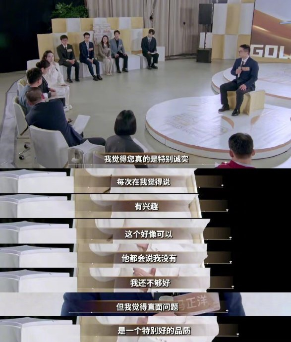她敏锐捕捉冯正洋“诚实”特质背后的珍贵,率先打破沉默:“我觉得您真的是特别诚实…直面问题是非常好的品质。” 这句不带评判的肯定瞬间消解对抗感,为选手重建心理支点。眼神中的鼓励更传递无声支持,让紧绷的冯正洋得以喘息。