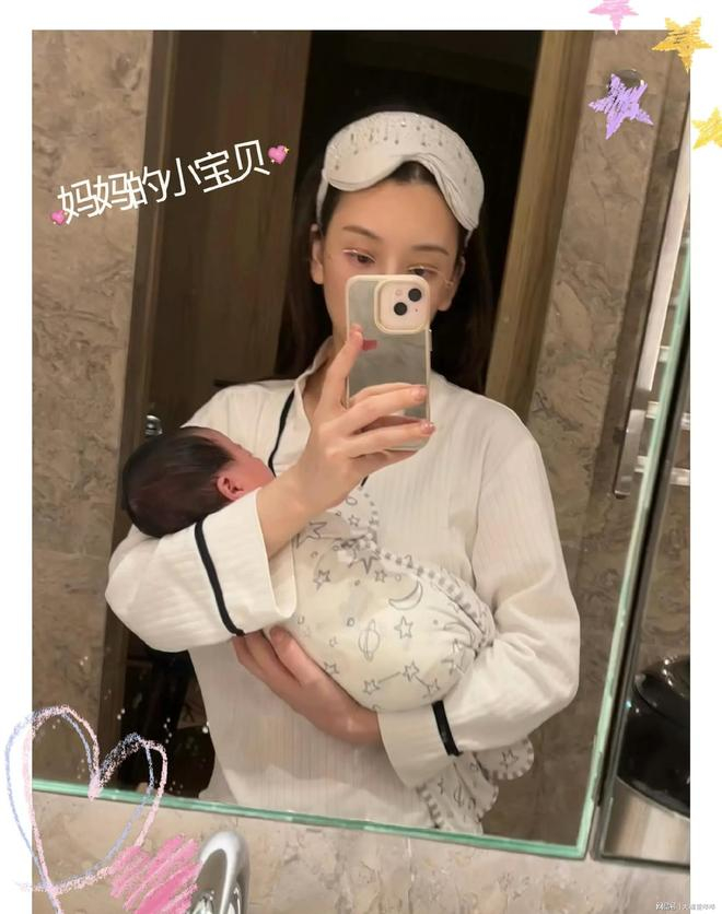 方媛抱着女儿对镜自拍,还亲了亲女儿小脑袋,母女互动画面温馨有爱。小公主待在妈妈怀里吃手手,十分乖巧可爱。