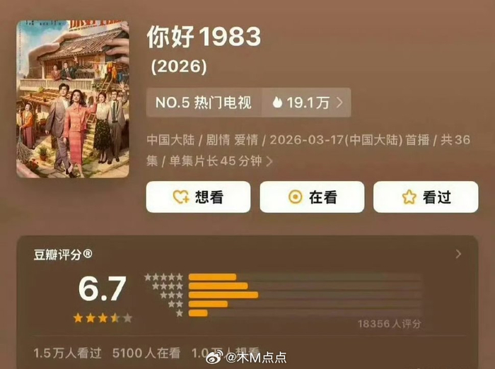 我有认真看过你好1983好几集,周也出道以来的资源从来都不差,她从最开始的95四小🌸(第一梯队)掉队到95颜巅四小🌸(第二梯队)再降级到热门95🌸不带她,完全是因为,她演戏没魅力!目前《你好1983》开分6.7 评分人数1.8w……高了低了? 我承认她出席活动是美的,但一到剧里颜值就被封印了,要么像硬气桀骜不驯的小男孩,要么浓妆加持下是美,但凶,整个人木楞楞的