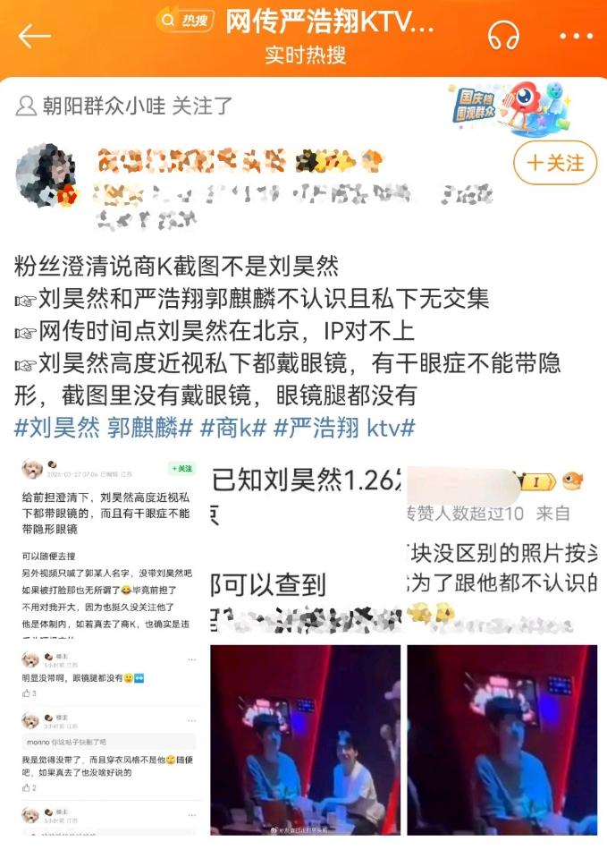 27日中午有网友爆料,称郭麒麟、刘昊然和严浩翔一起逛带有陪侍服务的商K,图片、影像和声音等样样俱全,疑似锤翻了三位正值上升期的小鲜肉。