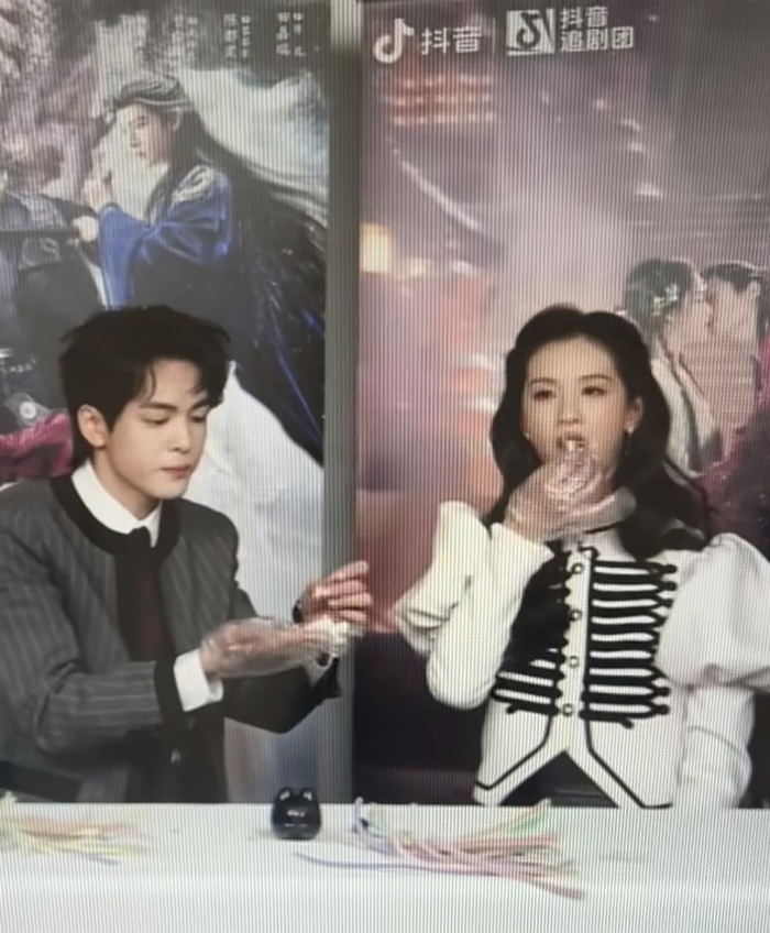 这是陈都灵和曾舜晞第四次合作了,之前还一起演过《莲花楼》《云之羽》《孤舟》。 直播里曾舜晞全程没取下陈都灵送的手环,陈都灵后来发微博还用了“敲木鱼”表情包隔空回应。