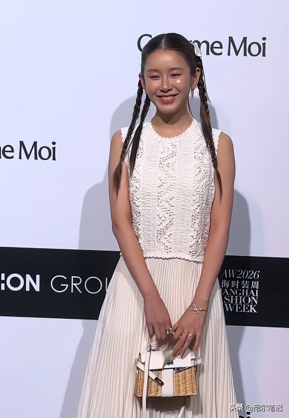 3 月 27 日她现身吕燕时装大秀,这是她时隔许久的正式公开亮相,造型上看得出来花了不少心思,一身白色镂空长裙配百褶裙摆,脚踩白色圆头鞋,还拎着竹编手提包,走的是度假风的松弛感路线。