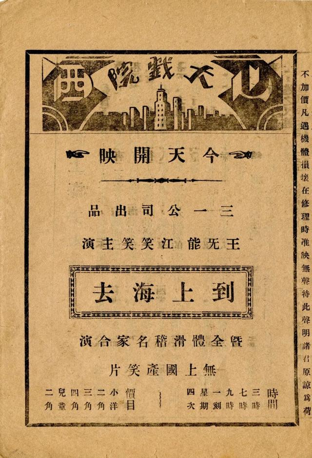 1933年出品的滑稽电影《到上海去》海报