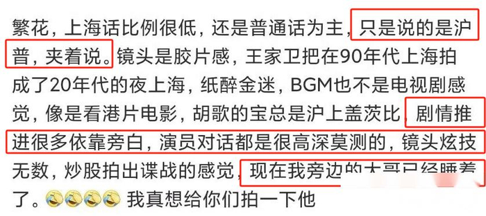 当然,《繁花》尚未正式上映,目前还无法做出最终评判