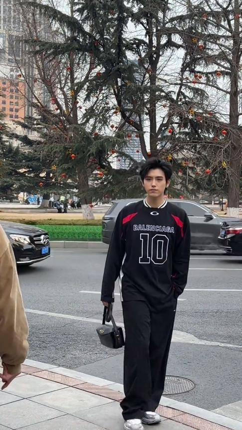 其实,在这次巴黎的现身之前,陈飞宇就常常被网友偶遇,而每次曝光时的状态又都不同。前不久,就有人在辽宁沈阳的中山公园拍到过他,那时候的他与现在的气场差异非常大。当时,他穿着一件深色球衣,搭配宽松运动裤,肩上背着一款偏商务风格的黑色双肩包,看起来有些不协调。他的头发并没有精心打理,刘海随意地垂到眉毛,鬓角也微微翘起,整个人显得松散而随性。