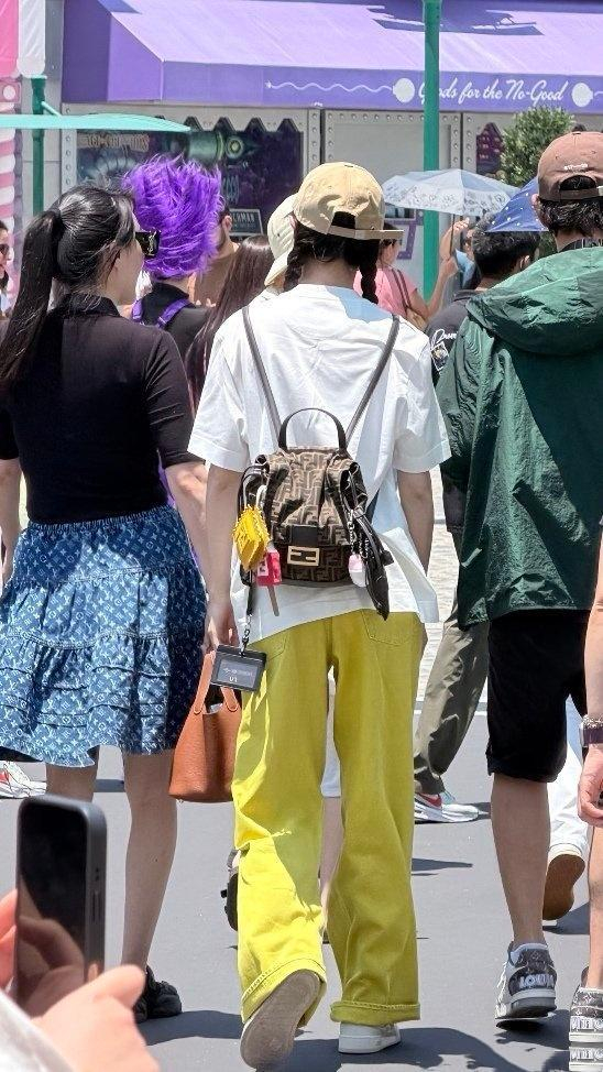 唐嫣下身穿明黄色的阔腿裤,上身穿白色T恤,并背了一个精致的小包。