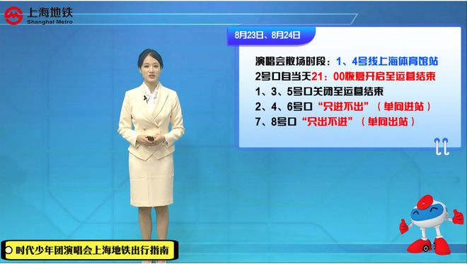 本期关注:时代少年团演唱会期间,临近演出场馆的1、4号线上海体育馆站,4号线上海体育场站,11号线上海游泳馆站,3号线漕溪路站出入口有何调整?乘客出行要注意啥?