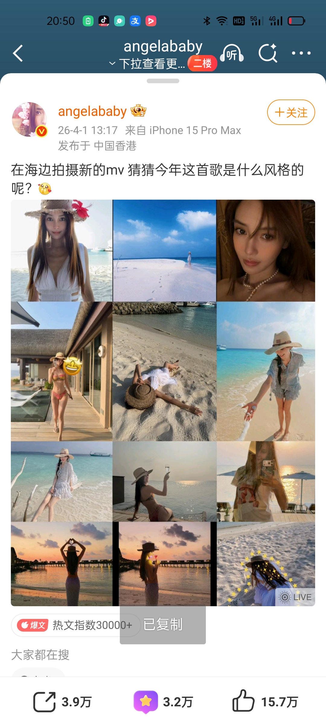 杨颖MV比基尼,性感臀腰比好身材,只有两张高清图#杨颖##Anglebaby杨颖#0401