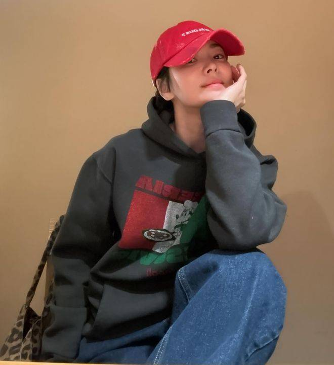 宋慧乔近日在个人社交账号上分享了一组温馨的照片,记录了她与新剧《慢慢地强烈地》剧组团队一起聚餐的美好时光。照片中的宋慧乔身穿一件深灰色的连帽卫衣,搭配一条宽松的蓝色牛仔长裤,戴着一顶桃红色的棒球帽,整个人显得既休闲又舒适。她悠闲地坐在椅子上,二郎腿翘得高高的,单手托着腮,微微望向镜头,眼神里透露着一丝放松与满足。照片中的她皮肤白皙,脸颊微微泛红,状态看起来十分不错,仿佛时间在这一刻静止,所有的疲惫都被抛在了脑后。