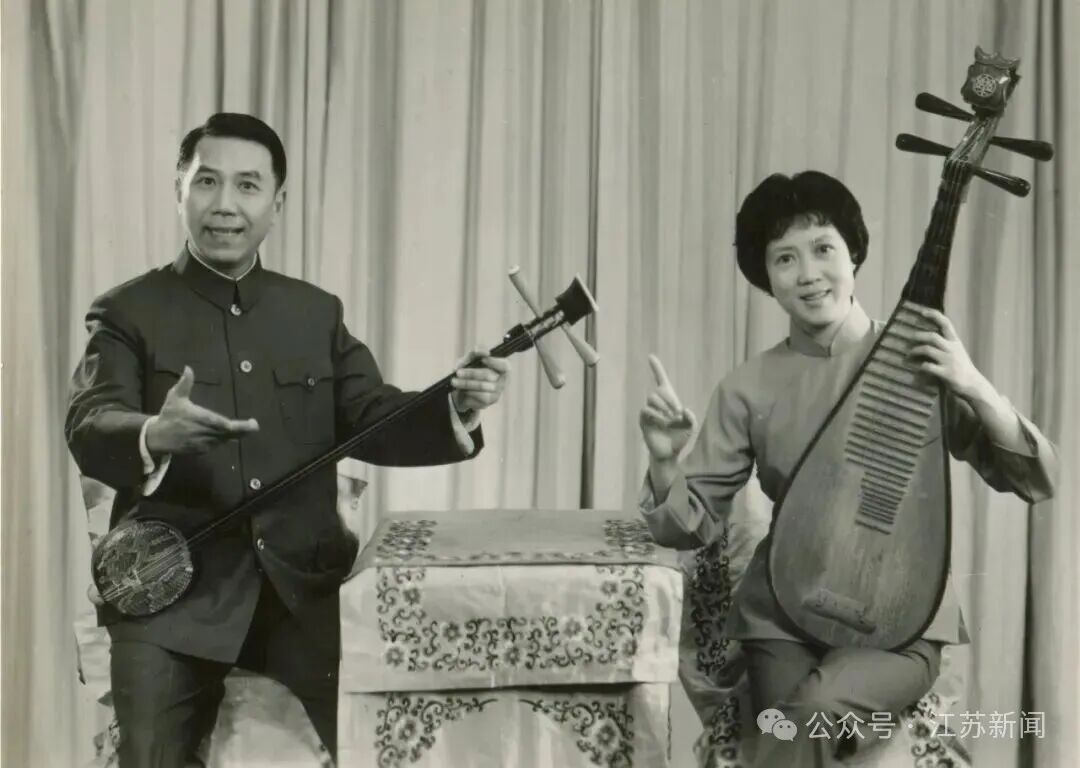 ▲ 与恩师凌文君(左)拼档长篇弹词《金陵杀马》