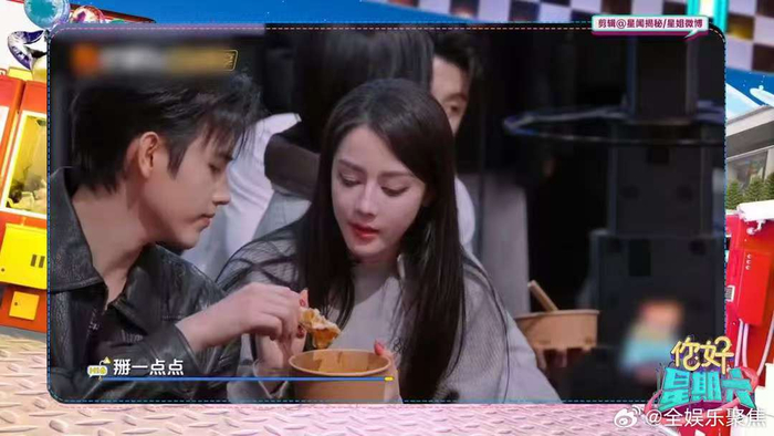 #迪丽热巴陈飞宇分享同一块葱油饼##你好星期六# 分饼名场面,谁的嘴角没上扬