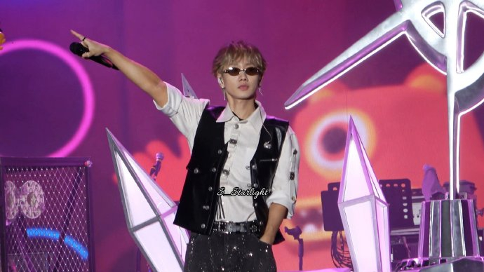 汪苏泷以《梆梆》的强劲节奏揭开演出序幕,标志性的嗓音瞬间穿透夜幕。电子音效与鼓点交织中,舞台激光束划破黑暗,观众随节拍跳跃,荧光手环汇成流动光海。紧随其后的《娱乐世代》延续亢奋情绪,他身穿镶钻机能风夹克登场,号召全场“告别前要跳舞”,复古迪斯科旋律引发千人齐舞。