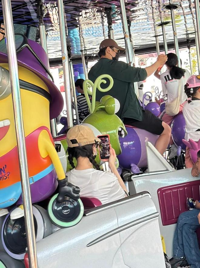 罗晋唐嫣两人一起陪着女儿坐旋转木马。。唐嫣坐在后排,罗晋陪着女儿坐在前面,唐嫣还拿起手机拍照,记录父女俩的快乐时光,真的太甜啦。