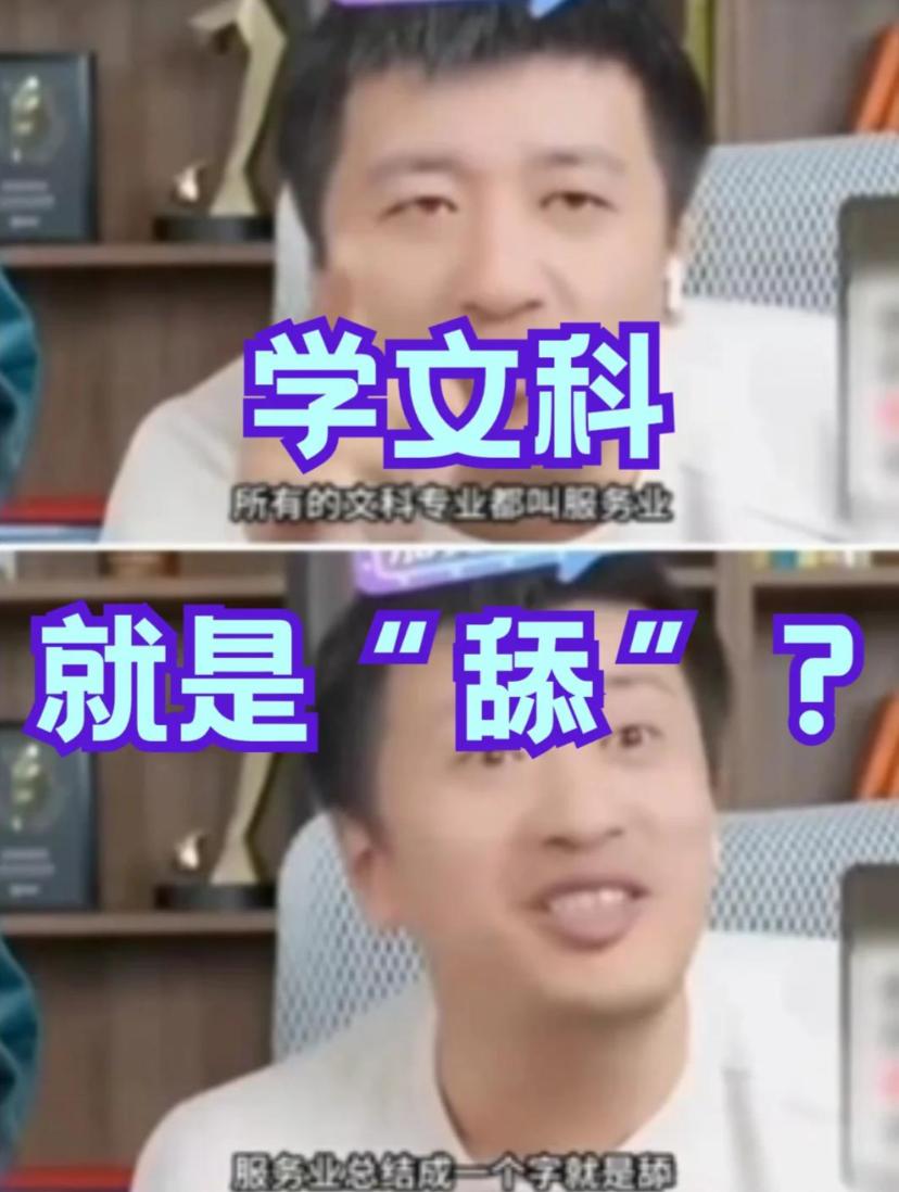 到了2024年,他更是全盘否定文科,直言文科都是服务业,归结起来就是一个“舔”字。