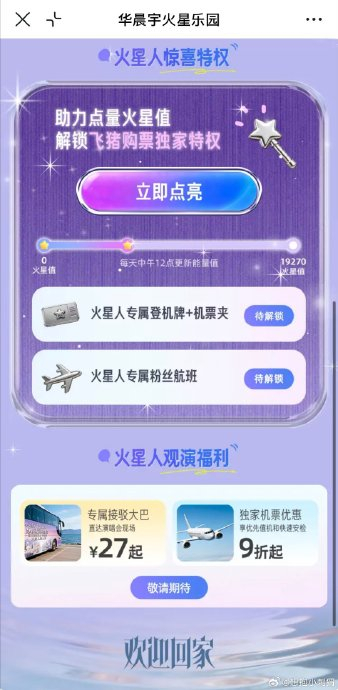 点亮进度达指定阈值可解锁登机牌、粉丝航班等权益,当前火星值已超1.9万(截至4月6日)。