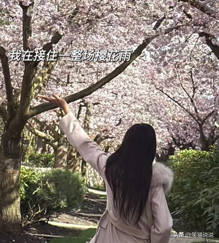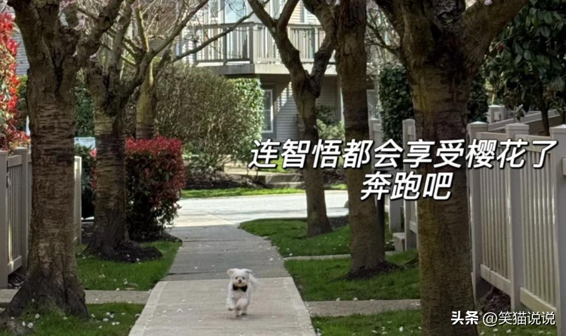 王祖贤抱着她的爱犬智悟来到街道上的樱花树下,她一边抱着爱犬智悟晒太阳,一边欣赏着这樱花的美景,这画面很温馨美好。天气很不错,阳光也很灿烂,花也开的很漂亮,确实很适合外出散步晒太阳。