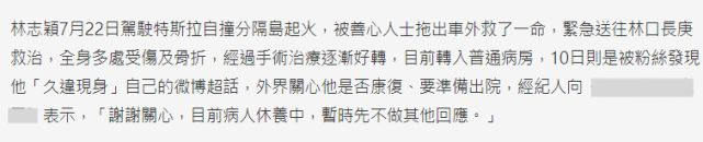 **吃瓜简评:林志颖空降超话报平安,网友疯狂猜他出院,经纪人一句话带冰冷回应!**,网络上热议不停,林志颖一事又上了风口浪尖,7月22日那场车祸事件后,林志颖一家经历了多少波折啊!从撞上桥墩起火到被紧急送往医院,再到接受两场手术、面部修复手术,还要经历半年恢复运动的路,这个男人可真是赚了大苦头。,命运的女神似乎不想让林志颖这么过得悲惨,她人设空降超话,重新签到!这一举动立刻引发了一波波谣言,有网友直接喊出院了!这个“出院”可不是他们想的那个味道,林志颖的经纪人迅速回应,明确表示“目前病人休养中,暂时先不做其他回应”,这下可好,网友们的脑洞一窜,纷纷开始分析:“这不就是林志颖在用特别的方式报平安吗?”“如果他恢复得这么好,居然还能上网,说明他肯定是在医院里偷偷上网!”“看来他的手术真的是成功了,恢复得相当不错!”,这波操作,确实让人既心疼又心疯,林志颖在出事前一直是个勤签到的小老板,每天都要在社交平台和粉丝们打个招呼,虽然这次被车祸打断,但粉丝们还是满怀期待:想必林志颖只是暂时卧床休养,等到身体好转一定程度后,肯定会重新开始他的“签到生活”啦!,话说这次车祸,林志颖可谓是“捉襟见肱”,他和二岁的儿子Jenson一起去比赛,结果在桥墩附近撞车起火,林志颖受伤严重,儿子只受了惊吓,没大碍,据悉,他因为粉碎性骨折接受了两场手术,肩膀还有钛合金固定,面部也需要修复手术,这波手术风云啊!而且医生预计他要半年才能恢复正常运动,这在粉丝心目中简直是天文数字。,最令人心疼的是,林志颖入院以来,老婆陈若仪寸步不离,从早到晚陪在他身边,连续几天没下床,真是情深缘浅啊!这对夫妻的爱情,简直要让人热泪盈眶,无论是林志颖的努力,还是他家人的支持,都值得我们为他们加油!,看到网友们对林志颖“出院”的猜测,真的有点既好笑又羡慕,毕竟,能在医院里偷偷上网,说明他的身体状况已经有了好转,至少能够独立使用手机,这已经是很大的进步了。,林志颖的事儿,真的是让人忍不住想为他加油!希望他早日康复,尽快回到我们身边,至于他是否真的会出院,那就让他自己说了吧,毕竟现在的他,已经是半步康复小能手了!